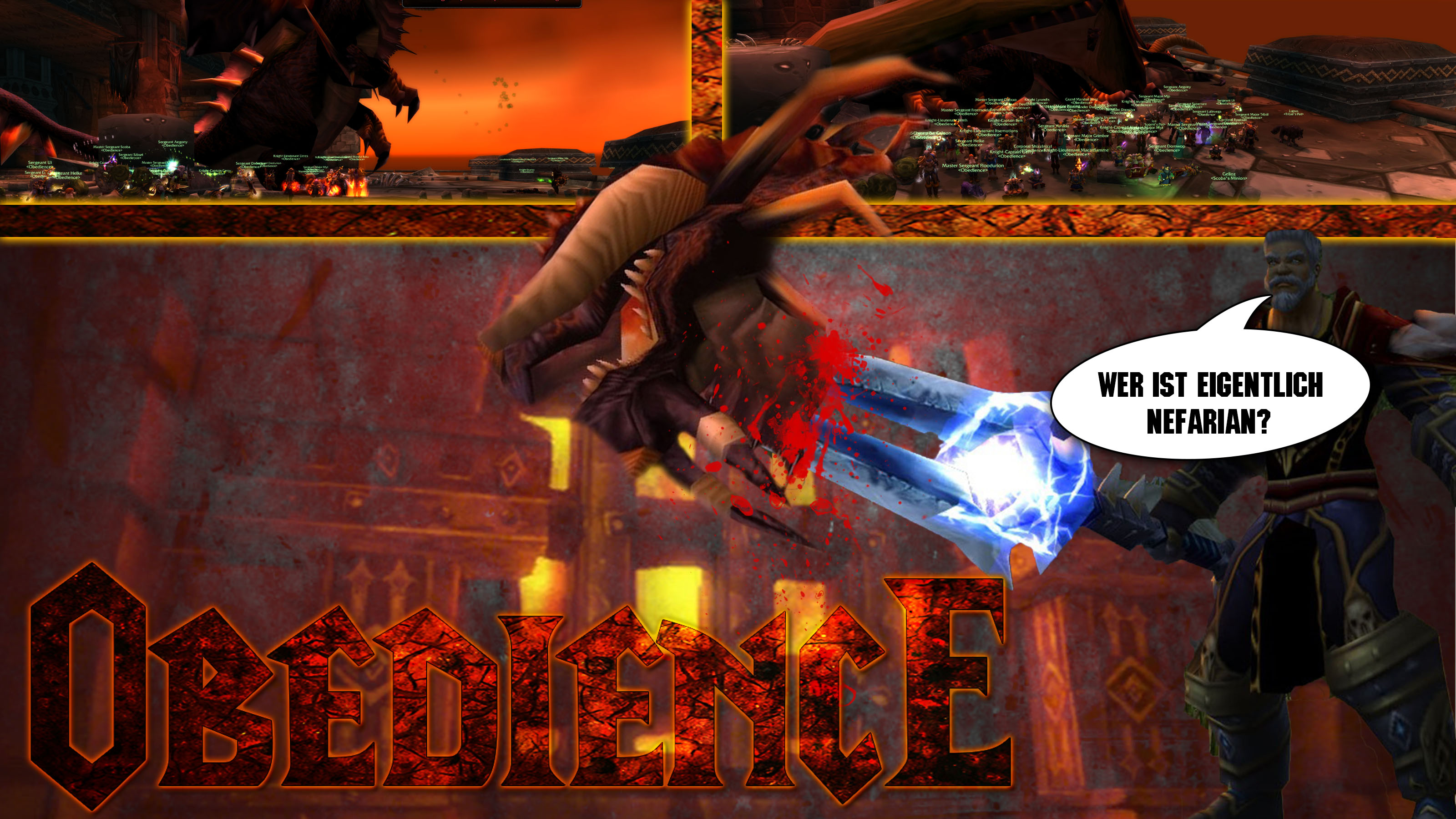 ![]() Es war einmal vor langer Zeit da stand Obedience zum Kampf gegen Nefarian bereit Am 16.02.2020 war es endlich soweit Obedience war zu allem bereit unsere Tanks liefen vorweg und bald waren wir in Nefarians Versteck 7 Hürden mussten wir nehmen brauchten aber nicht lange, diese zu bestehen Boss für Boss kämpften wir verbissen wir haben sie alle, aus dem Leben gerissen Nun standen wir da zum Duell mit Nefarian Voll gebufft und mit viel Mut wollten wir Nefarians Drachenblut Der Kampf war schnell vorbei und Nefarian lag vor uns entzwei Unser Maintank war ganz perplex denn es war doch nicht so komplex So war es nun vollbracht Obedience gewann die Schlacht ![]() Posted on 29 Apr 2020 by gerry